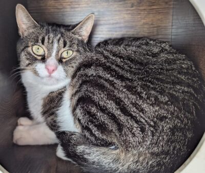 Filou ist ein dreijähriger, kastrierter Kater in weiß mit Tigerzeichnung. Anfangs noch etwas vorsichtig, sucht er dennoch die Nähe zum Menschen und wird sich mit etwas Geduld zu einem anhänglichen Begleiter entwickeln.